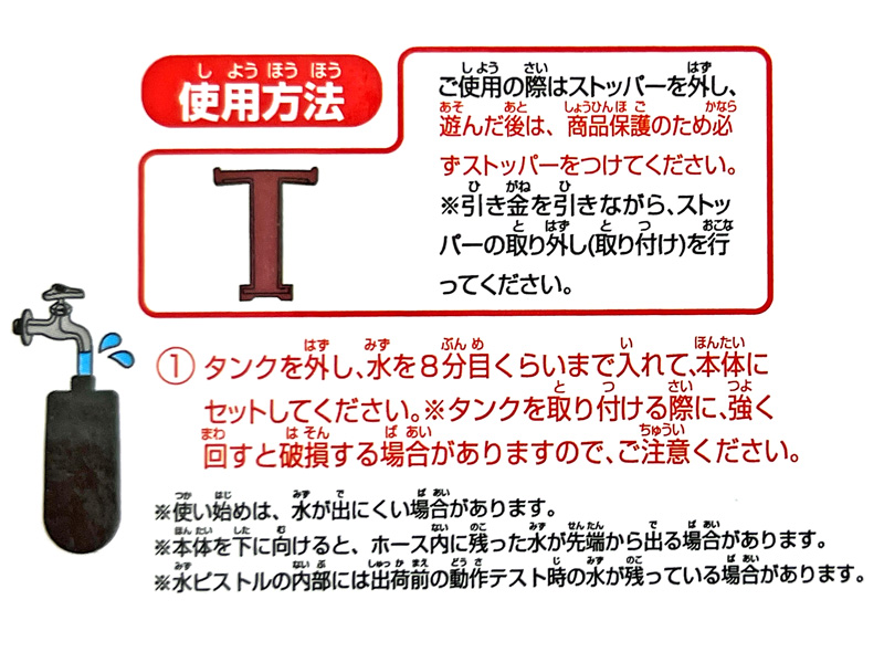 - ※ご使用の際は引き金部分のストッパーを外し、遊んだ後は商品保護のため必ずストッパーをお着けください。