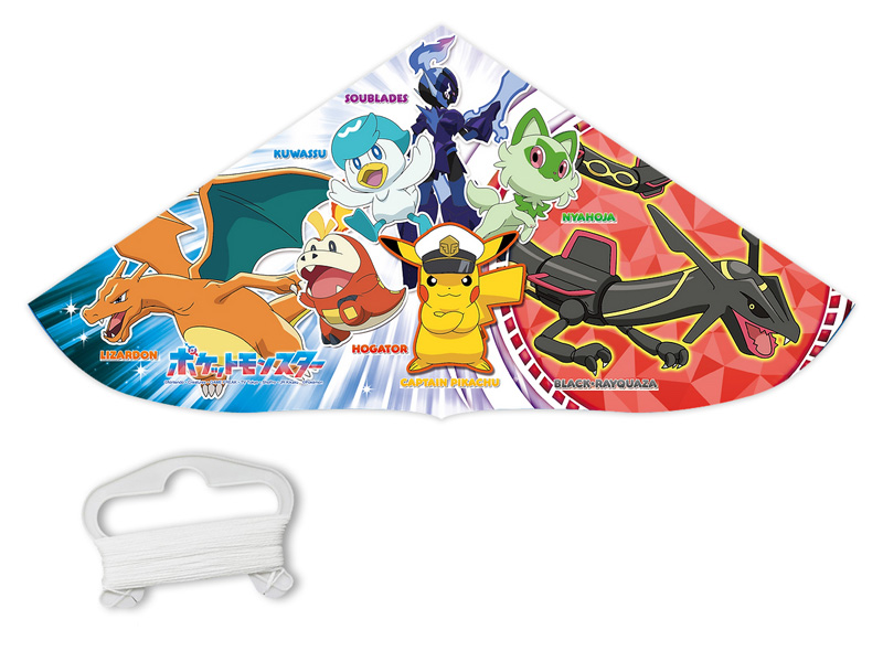 ポケモンの愛称で世界的に有名な日本のゲーム「ポケットモンスター」のキャラクターカイトが今年も登場!タコ糸(約50M)も付いるので、すぐに遊ぶ事が出来ます、骨組みには新素材のバサルトクロスロッドを採用。本体下には2ヵ所の穴があり、風の強さによって調節ができます。凧揚げ、お正月ぐらいしかやらないけど、楽しいですよね!寒さも忘れて揚げ続けちゃいます!