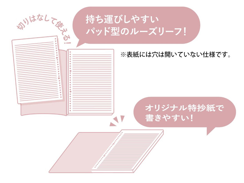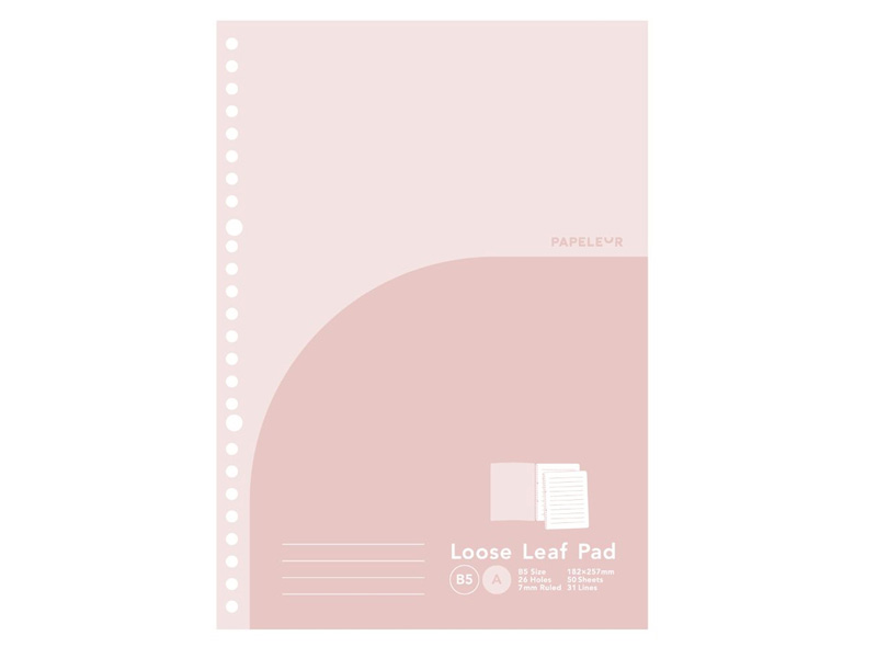 シンプルなデザインで幅広く使えるPAPELEUR(パペルール)のシリーズから 便利なアイテムが続々登場!こちらは持ち運びに便利なパッド型のB5ルーズリーフ。好きなページをノートから切りはなして使えるのが特徴です。