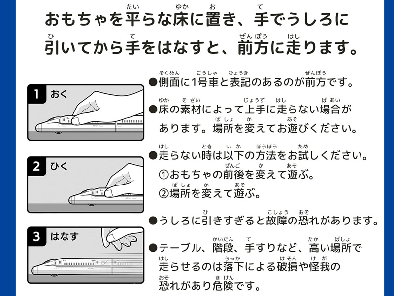 - ●側面に1号車と表記のある方が前方です。/●床の素材によっては上手く走らない場合があります。