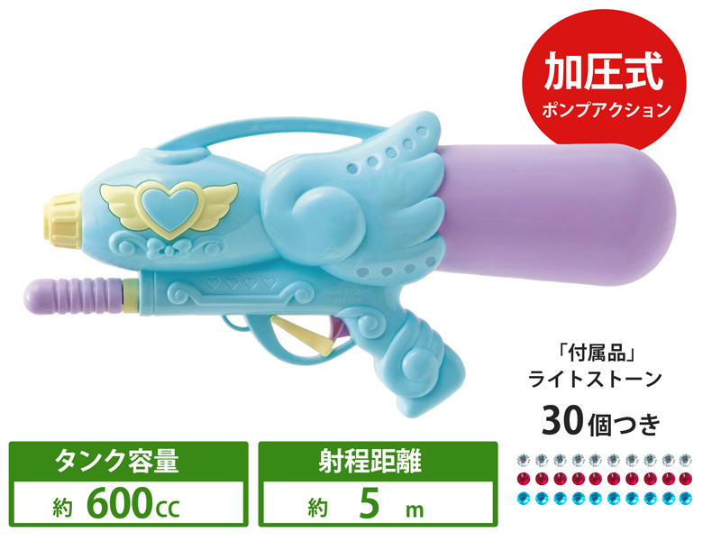 - 平均飛距離(本体水平時):約5m/タンク容量:約600㏄/付属品:ライトストーン(30個付)