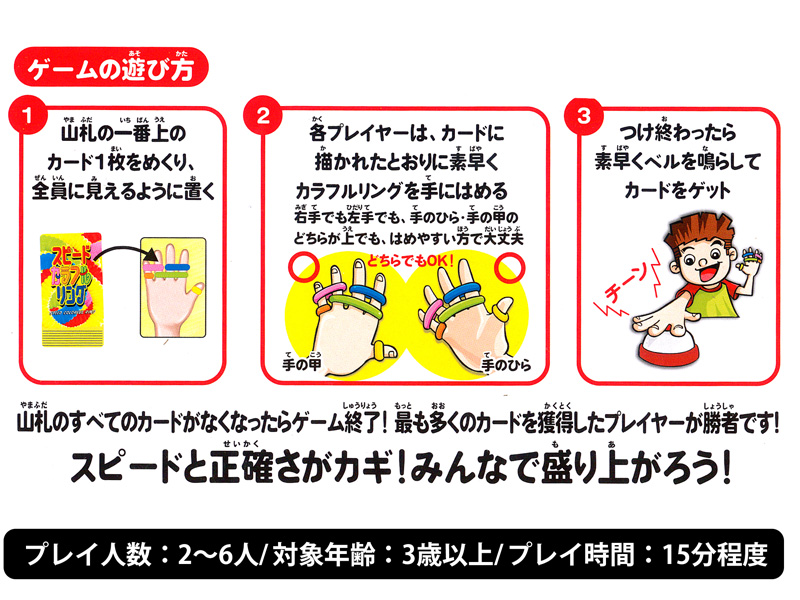 - ・プレイ人数(2~6人)/・プレイ時間(15分程度)/・対象年齢3歳以上