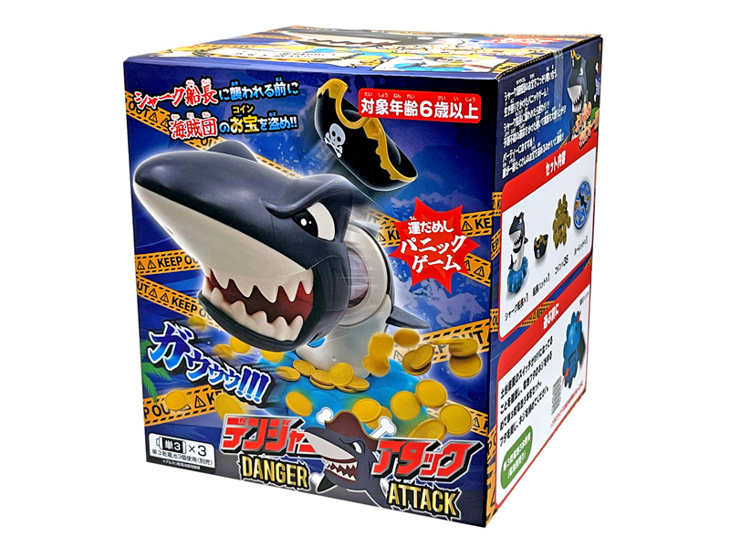 ルーレットが止まった瞬間、運命が決まる…!ドキドキの海賊ミッションが楽しめるスリリングなアクションゲーム「デンジャーアタック」が登場!シャーク海賊団のお宝をこっそり奪い合う、生き残りをかけたパニックゲーム!シャーク船長に襲わたら一巻の終わり!予測不能の運命をかけた戦いで家族も大盛り上がり!誰が一番たくさんのお宝を盗めるかいざ勝負!大人から子供までドキドキを楽しめるパーティーゲームです♪