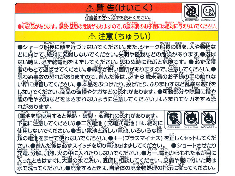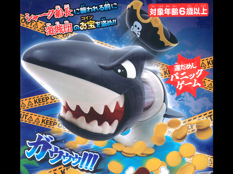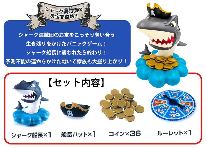 - 「セット内容」本体(シャーク船長)×1体、船長ハット×1個、コイン×36枚、ルーレット×1個、