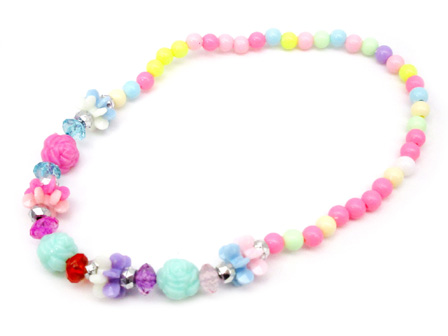 カラフルビーズのオシャレなネックレスが新登場♪ヒモの部分はゴム紐なので伸縮自在♪女の子向けのくじ景品やノベルティ玩具などにオススメですよ。