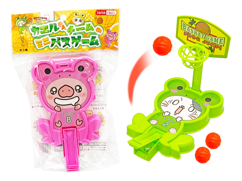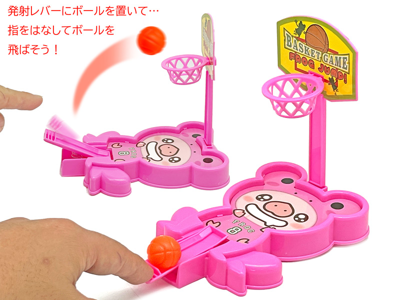 カエルさんユニフォームが可愛いアニマルのミニバスケットゲームが新登場~♪こちらは発射台にのせたボールを指ではじいてゴールにいれる卓上バスケットボールゲーム。指で押さえる強さを調節してボールをゴールに入れよう!個別包装されておりますので、お子様ランチやイベントの景品におすすめです。
