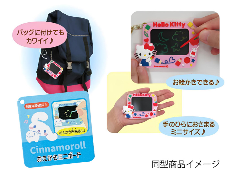 大人気サンリオグッズから可愛いnewアイテムが続々登場~♪こちらは、専用ペンで画面に絵や文字が描ける!「おえかきミニボード」※ペンは本体に差し込み収納されています♪手のひらサイズのコンパクトなミニボードキーはキーホルダー付きでバッグやリュックに付けて持ち歩いてもカワイイよ♪個人用にはモチロンのこと、可愛い見た目はプレゼントにもぴったりです!