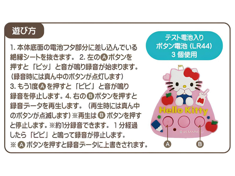 - 録音時間:約1分 /素材:PVC(パーツ部分)、ABS(本体部分)。