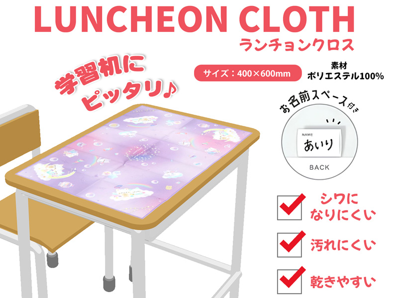 入学 新学期にぴったりなランチ雑貨シリーズが続々登場~♪こちらは学校の机にもピッタリなサイズの「ランチョンクロス」シワになりにくく乾きやすいポリ素材。新入学 新学期のプレゼント・ランチ雑貨にゼヒ!