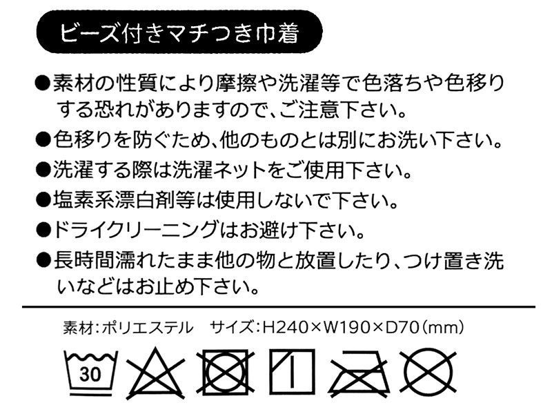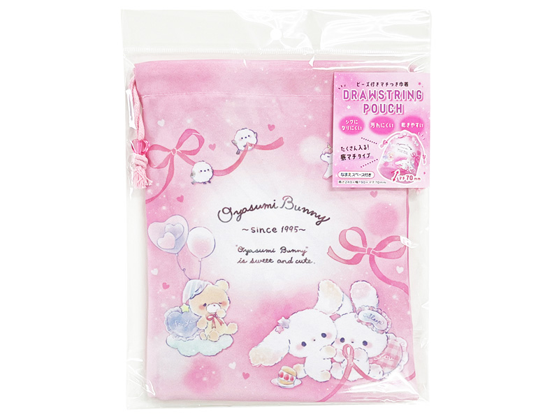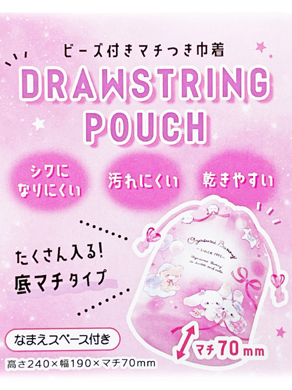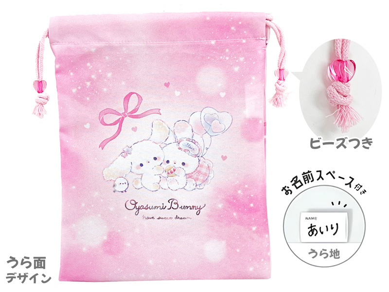 ビーズ付きマチつき巾着 おやすみバニー:06235