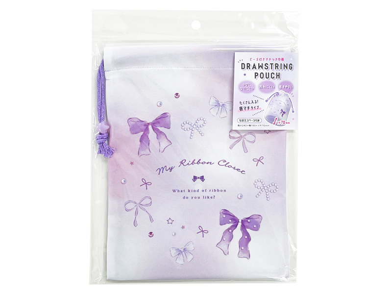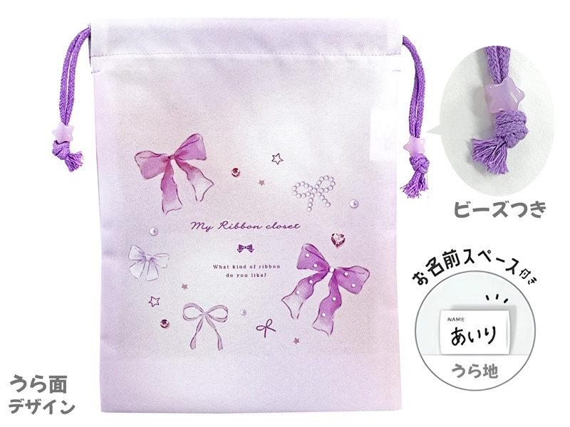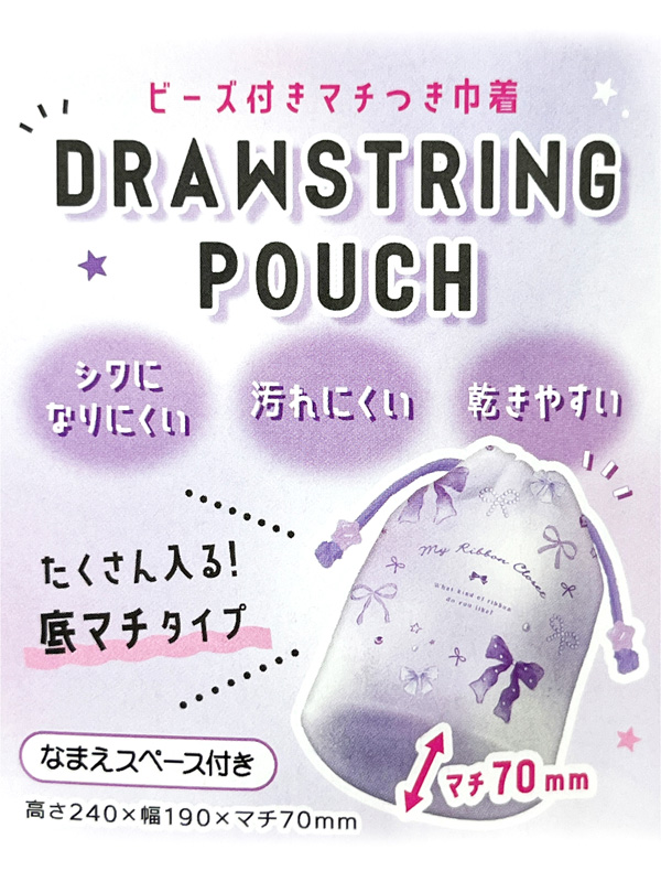 ビーズ付きマチつき巾着 マイリボンクローゼット:06238