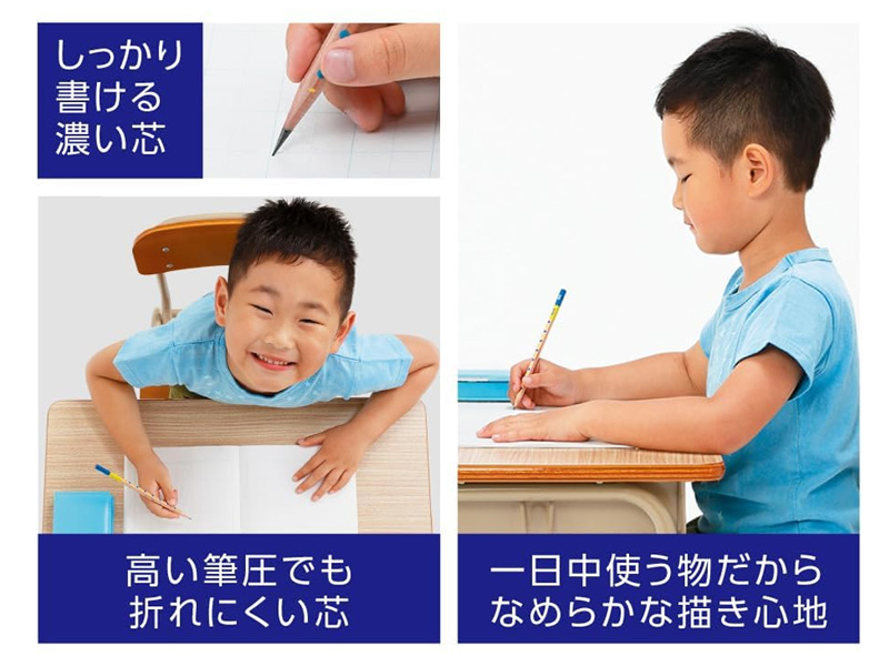 「ippo!きれいに消えるかきかたえんぴつ」2本パックが登場!特殊成分配合の“さら消え芯”採用。濃くやわらかい芯で書いた文字もさらっときれいに消えます。書いたり消したりを繰り返しても書いた跡が残りにくいので文字がはっきりと読みやすくノート学習に最適です。