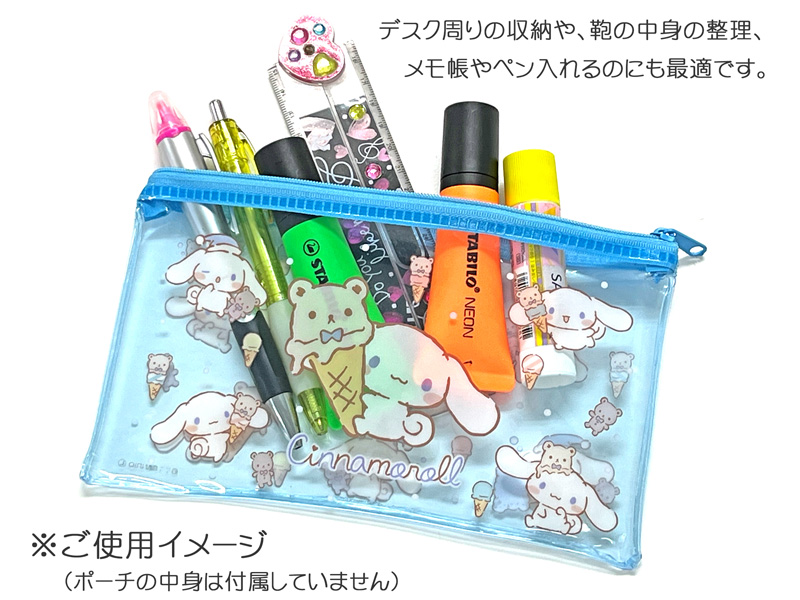 家庭やオフィス・旅行などアイデア次第で使い方色々。サンリオキャラクー『シナモロール』のクリアポーチワイドが登場です!