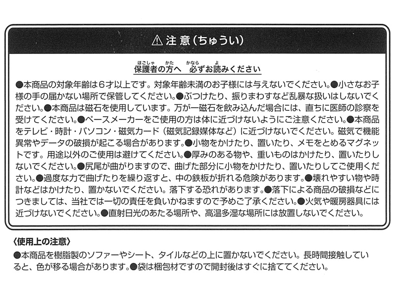 - ※パソコン・時計・磁気製品・磁気カードなど磁気の影響を受けやすいものに近づけないでください。