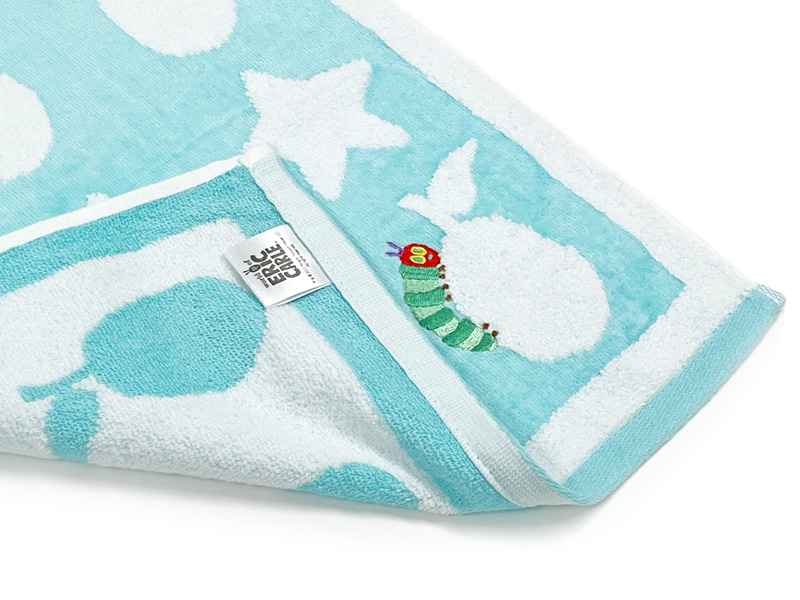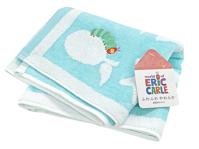 「はらぺこあおむし」のキャラクターフェイスタオルが登場♪無撚糸を使用したタオルは、ふんわりやわらかな肌ざわりで、バスタイムのほか、台所や洗面所など色々な場所で大活躍。肌ざわりがよく、かわいいタオルは、普段使いの他にも、保育園・幼稚園など教育施設さんでのプレゼントやギフト・ノベルティ、粗品にもオススメです。