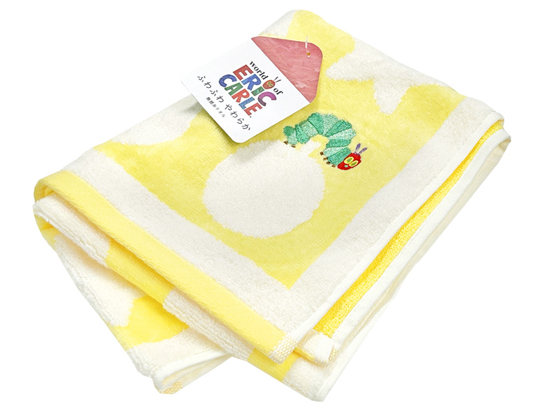 「はらぺこあおむし」のキャラクターフェイスタオルが登場♪無撚糸を使用したタオルは、ふんわりやわらかな肌ざわりで、バスタイムのほか、台所や洗面所など色々な場所で大活躍。肌ざわりがよく、かわいいタオルは、普段使いの他にも、保育園・幼稚園など教育施設さんでのプレゼントやギフト・ノベルティ、粗品にもオススメです。