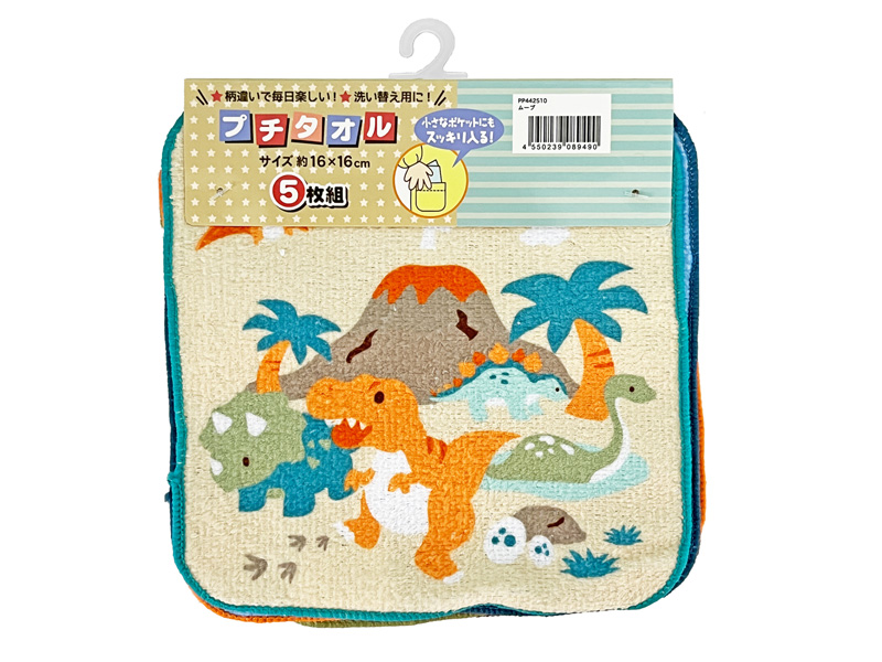 毎日使いにちょうど良い!「ムーヴ」のプチタオル3枚組が登場!お子さまの通園・通学のお供にピッタリ♪また約16×16cmのミニサイズなのでお子様の手にも持ちやすく、スモックのポケットにも収まる便利なサイズです。