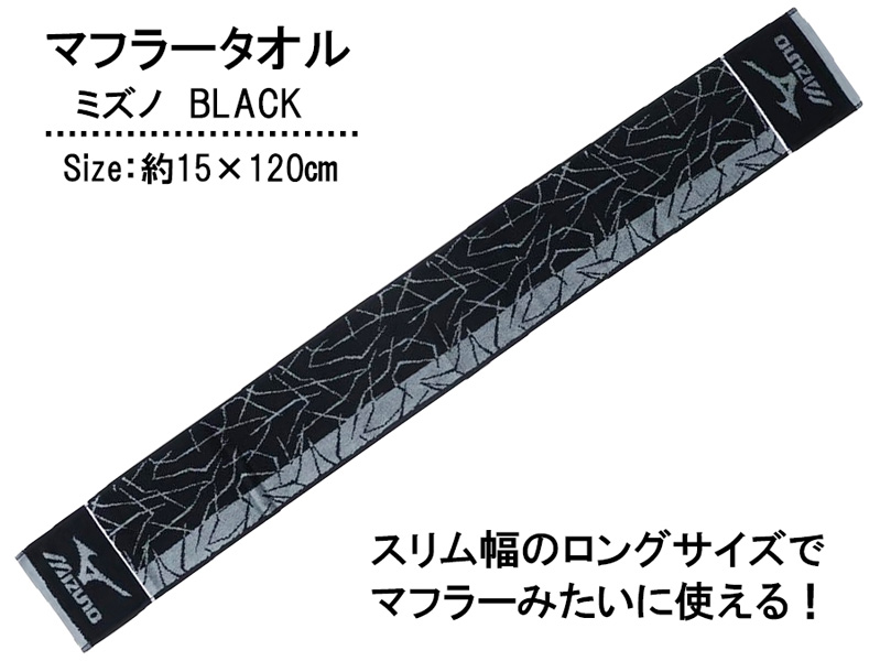 スポーツブランド「mizuno」のロゴがプリンされたかっこいいマフラータオルが登場です!やや細め&長めのマフラータオルで、スポーツに大活躍♪首に巻きやすいサイズなので、アウトドアの時にも使いやすいです。