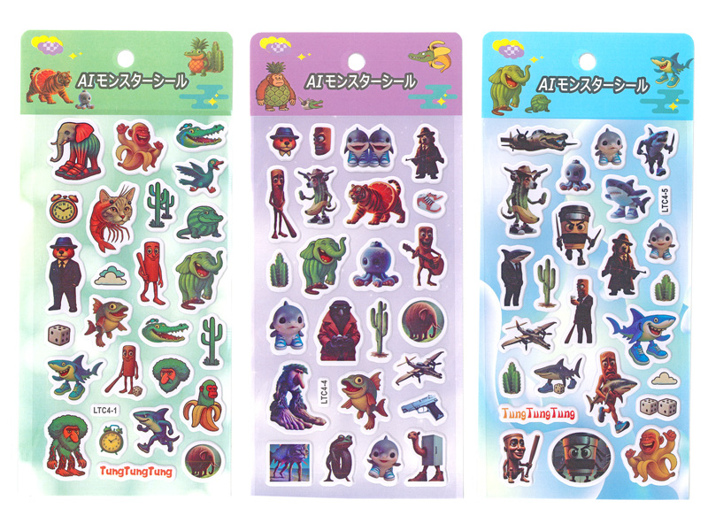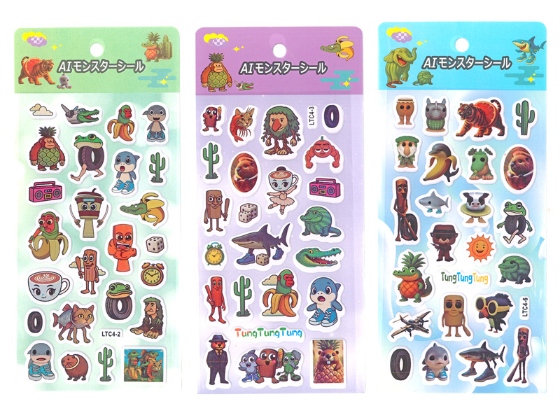 SNS上で話題の『AIモンスター』をモチーフにしたぷっくりシールが登場♪靴をはいたサメ・ティーカップのバレリーナ等々…奇妙なキャラクターたちが大集合!楽しいシールは全6パターン!個別包装されておりますので、飲食店さんのランチ景品や各種イベントの販促・ノベルティなどにもおすすめです。