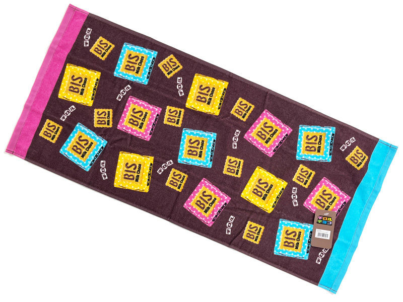 みんな大好き【チロルチョコ】デザインのフェイスタオルが登場~♪表はシャーリング加工、裏はパイル地で肌触りなめらか。綿100%で吸水性もバツグン!低価格でインパクトも強いため、子供会や学校行事の景品、企業のノベルティグッズとしても最適です。