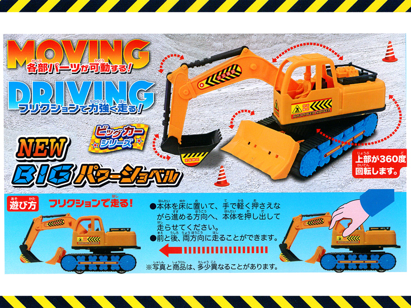 工事現場で大活躍の重機【パワーショベル】の玩具が登場。重機は各部パーツが稼働(上部は360度回転します。)男の子向けのお誕生日プレゼント・景品玩具にいかがでしょうか。※ちなみにショベルは手で動かすフリクションカーです。