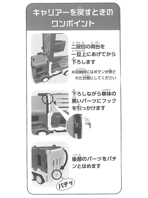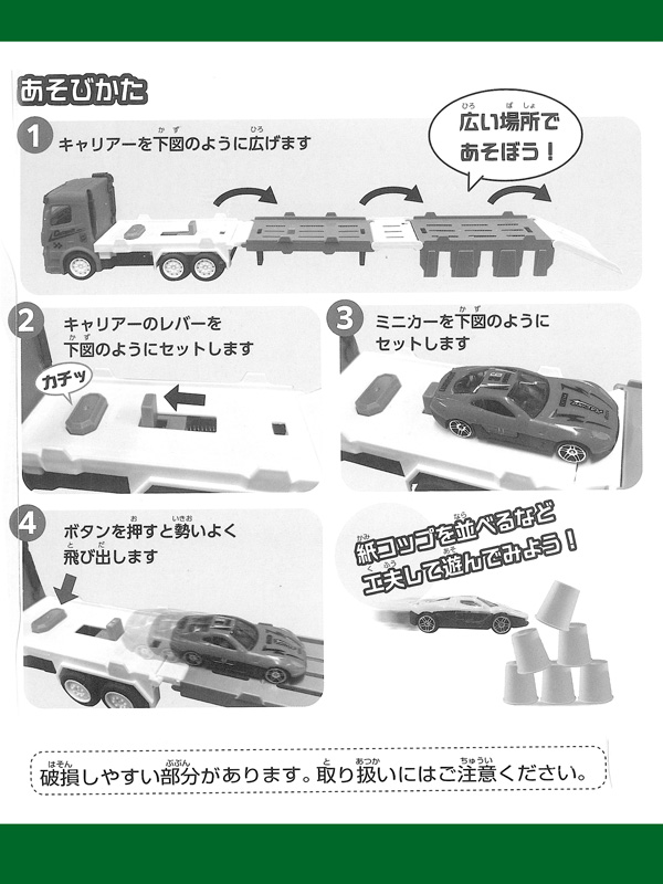 - セット内容:キャリアカー(トラック)×1台・ミニカー×3台