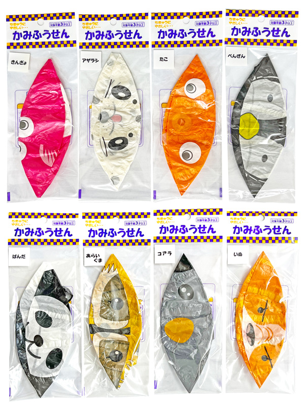 - 紙風船:全8種(きんちょ・アザラシ・たこ・ぺんぎん・ぱんだ・あらいぐま・コアラ・いぬ)