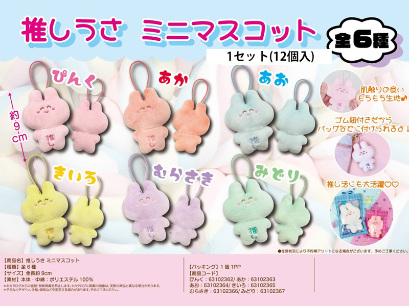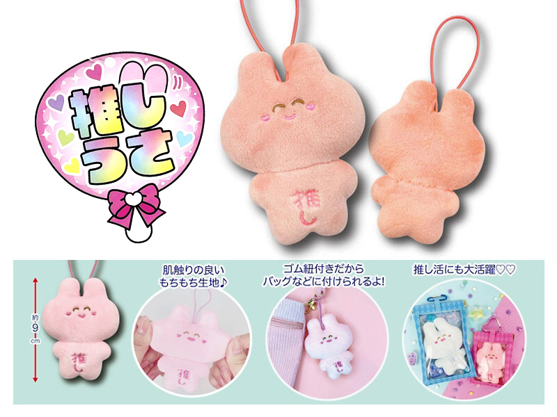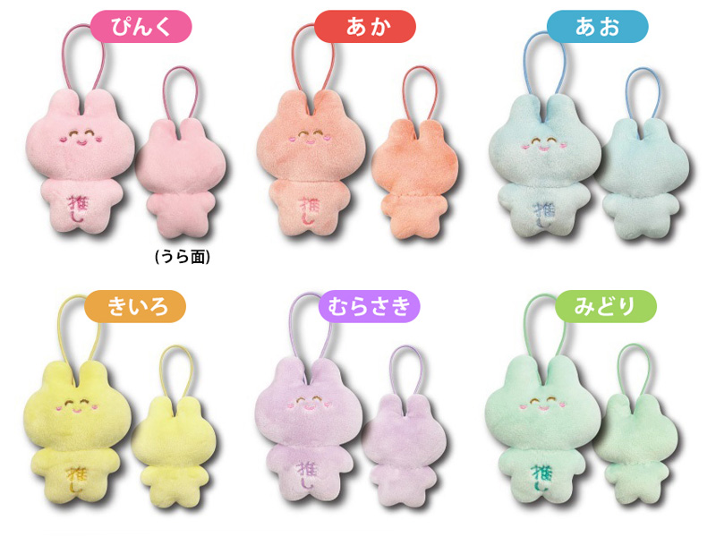もちもち触感の推しうさマスコットが登場♪手触りの良いもちもち生地が最高!!ゴム紐付きでお気に入りのグッズやカバンなどに付けられます☆本体カラーは6色展開。推しのパーソナルカラーに合わせて是非、推し活してくださいネ♪
