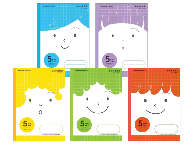 ジャポニカフレンド 5mm方眼罫(リーダー罫入り) 5色5冊パック