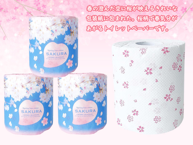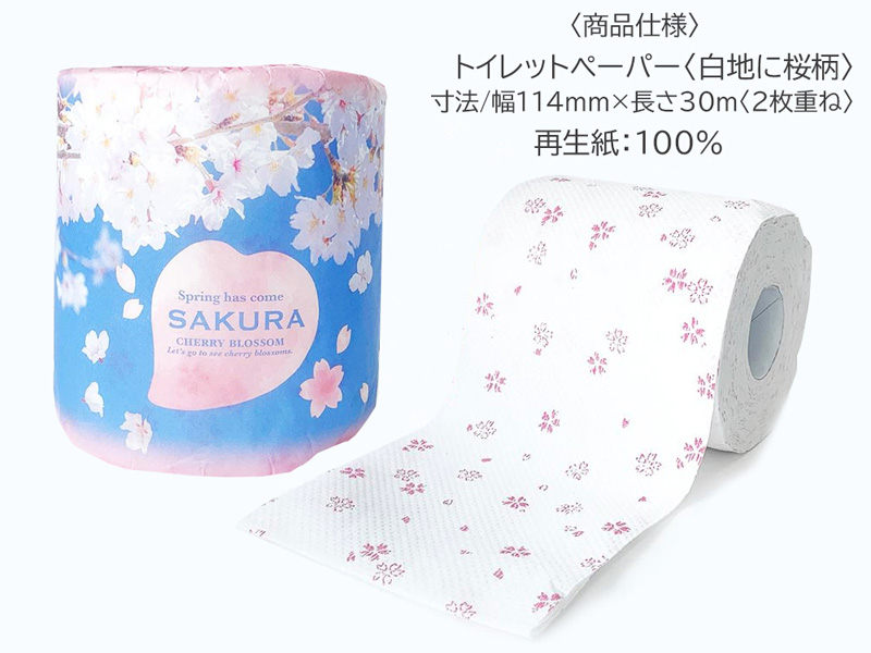 - ペーパーロール仕様…プリント生地:(白地に桜柄)/サイズ:幅114mm×長さ30m(2枚重ね)