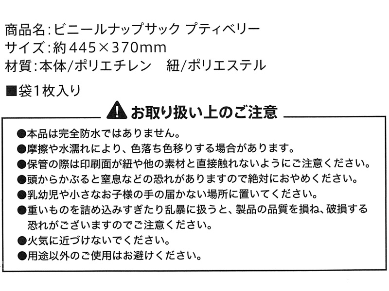 - 素材…(本体):ポリエチレン、/(紐):ポリエステル、