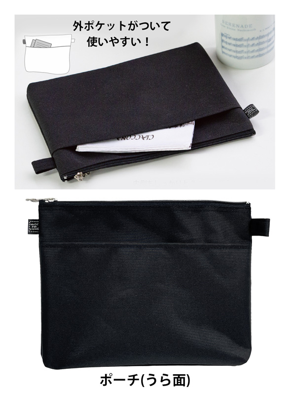 外ポケットもあって使いやすい!ミュージック柄ポケットポーチ【ト音記号】です。内側もしっかりと2つに仕切られていますので使い勝手もよく、インバッグポーチとしても。ポーチとしても、バッグインバッグとしても整理整頓にとても使い勝手の良いポケットポーチです。