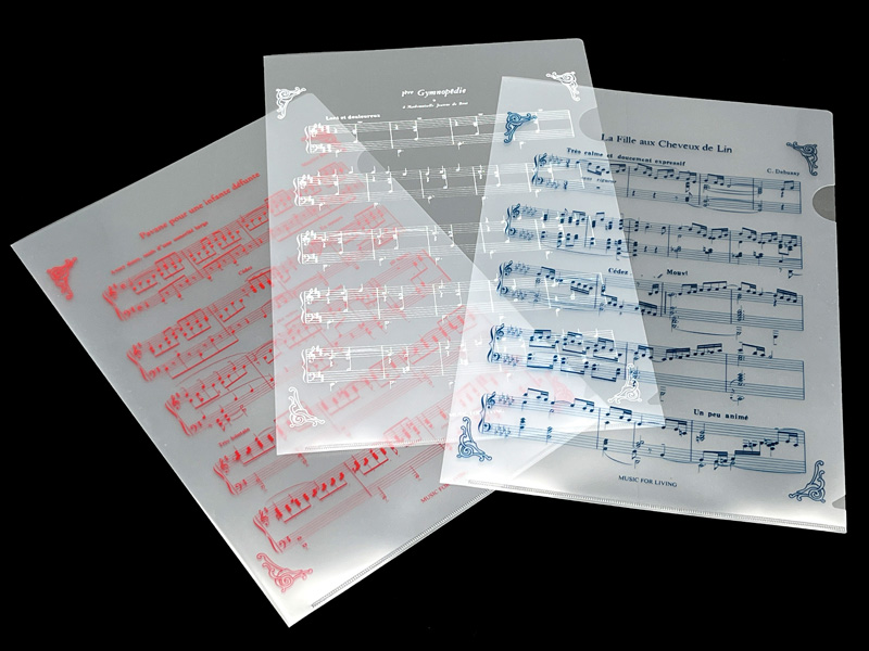 透明なファイルに有名なフランス音楽の譜面がプリントされた、ちょっとおしゃれなクリアファイルです。楽譜や書類、習い事や学校からのお便りの整理にも楽しく大活躍♪3枚セットなので色違いで使い分けできるのも便利です。