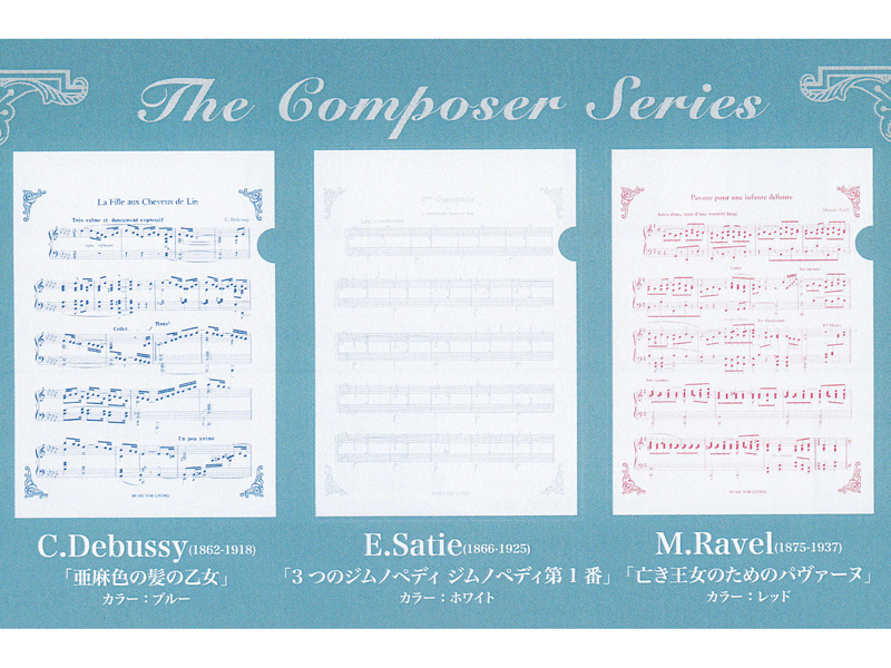- クリアファイル3枚入…【亜麻色の髪の乙女】【3つのジムノペディ ジムノペディ第1番】【亡き王女のためのパヴァーヌ】