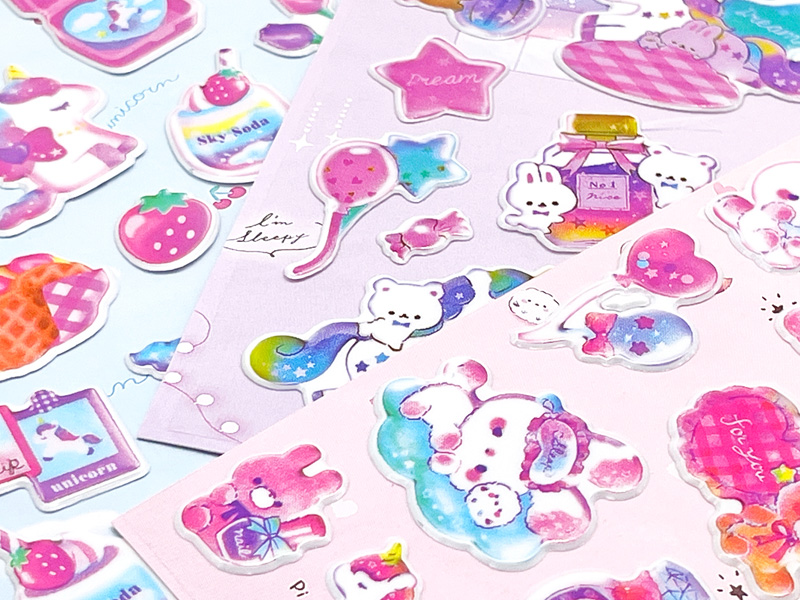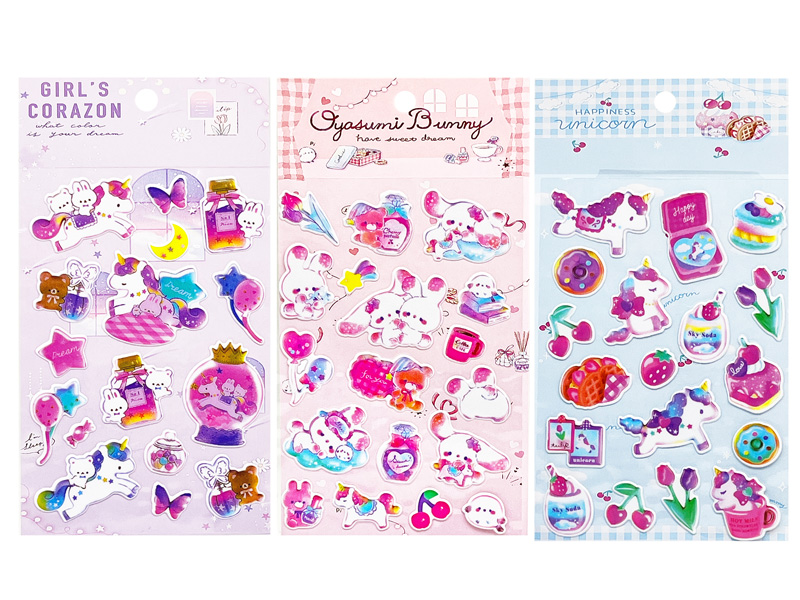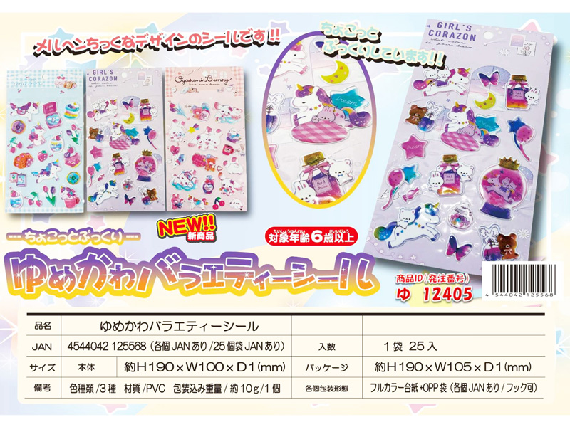 メルヘンなデザインのちょこっとぷっくりシール「ゆめかわバラエティーシール」が登場~♪シールの種類は全3種類。超かわいいぷっくりモチーフは、ノートや手帳の表紙、スマホケースのデコレーションにもぴったり。貼るだけでワンポイントのアクセントになり、かわいさがぐ~んっとアップします。女の子向けのご褒美景品やプチギフトにもおすすめです!
