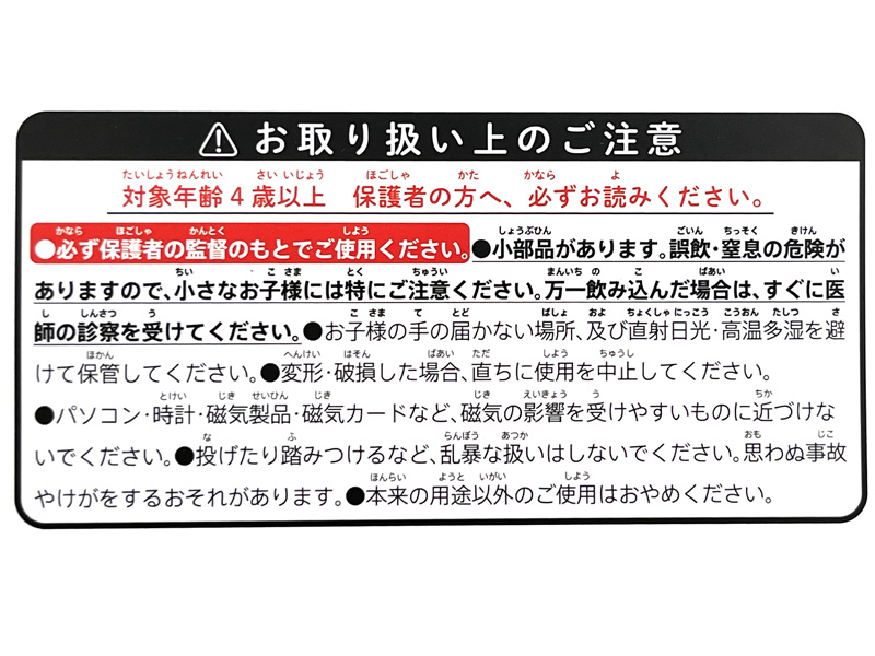 - ※小部品があります。誤飲・窒息の危険がありますので、絶対に口の中にいれないでください。