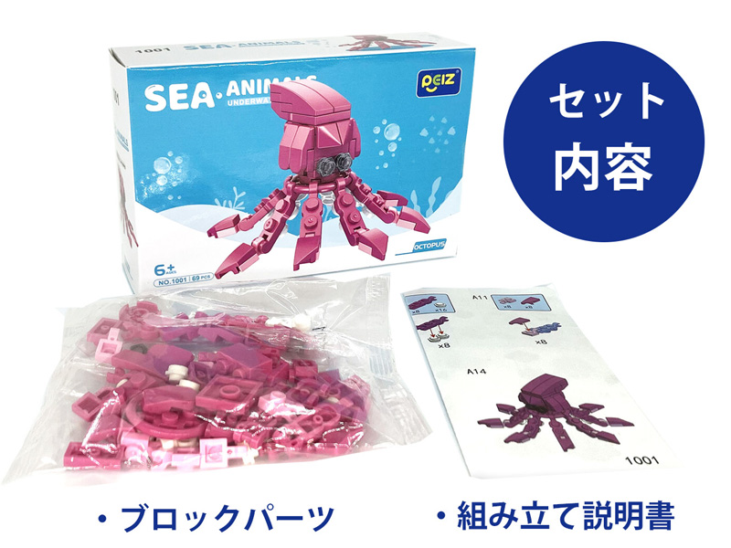 大人気のくみたてブロックシリーズに「海の生き物ブロック」が登場です!箱の中の説明書を参考にパーツを組上げていくと…海洋生物のオブジェのできあがり!ブロックのバリエーションは全部で8種!お子様向けご褒美景品・プレゼントにゼヒ!