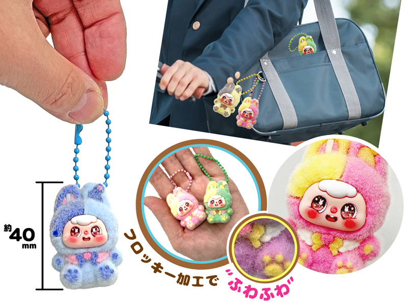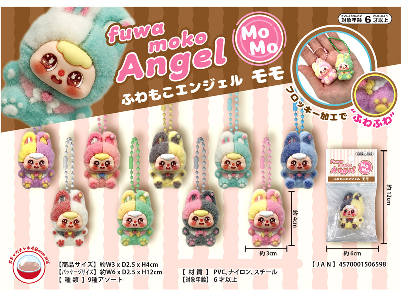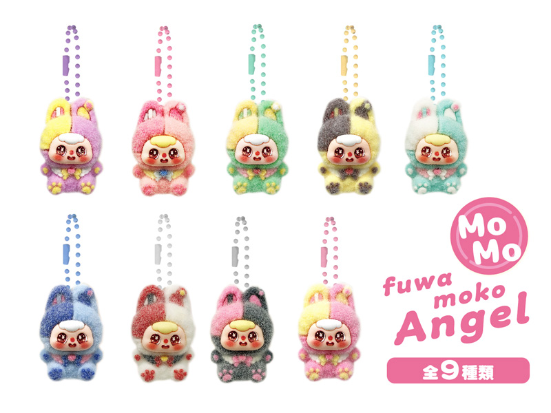 キラキラおめめとベビーフェイスがキュートなミニマスコット「ふわもこエンジェル モモ」が登場♪人形の表面はふわふわとした柔らかなフロッキー素材となっております。本体カラーは全9種アソート。ボールチェーンが付いておりますので、かばんなどにぶら下げてお使いいただけます。