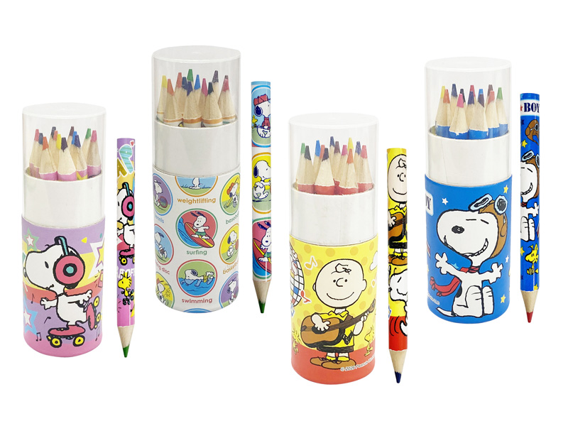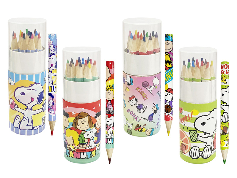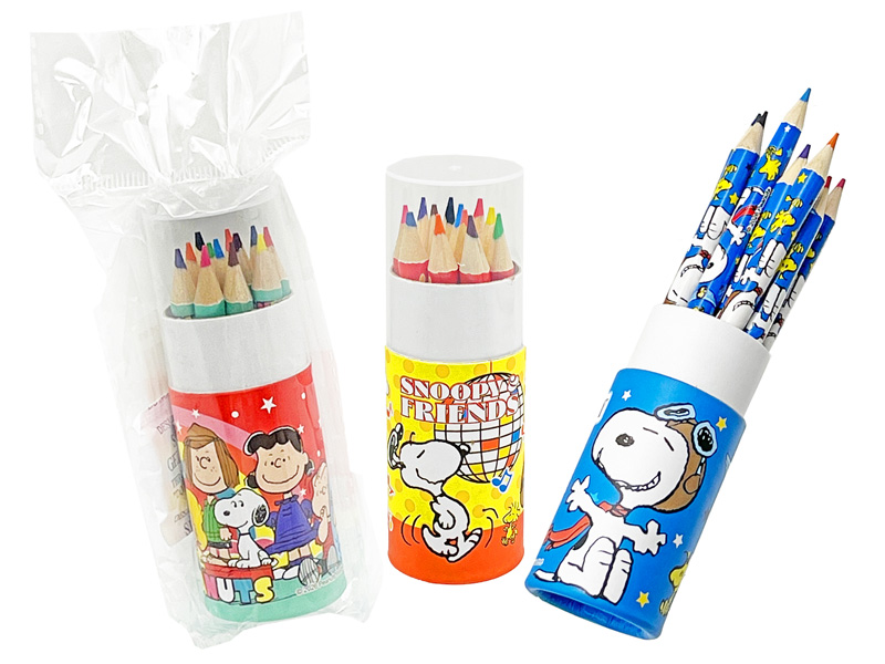 スヌーピーの色鉛筆セットが登場~♪こちらは可愛い入れ物に入った12色色鉛筆セットです。ケースと鉛筆の絵柄は全8種類!低単価ですので、ぬりえやラクガキ帳とセットにして景品や販促品にしてはいかがでしょうか?
