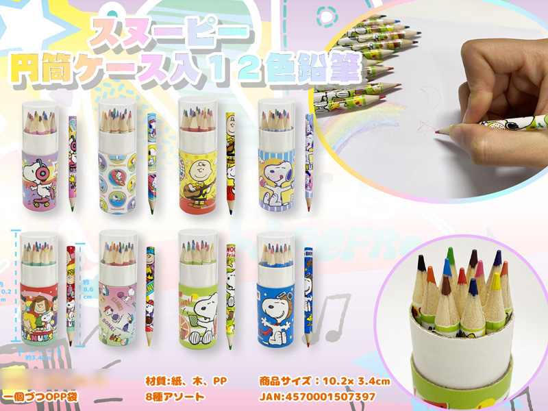 100景品 スヌーピー 円筒ケース入12色鉛筆