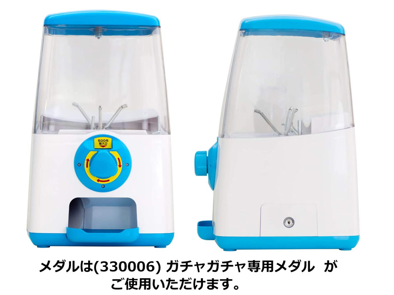 『専用メダル』で回る卓上設置タイプのブルーのガチャマシンです。メダルは別売りの【330006】をご購入ください。