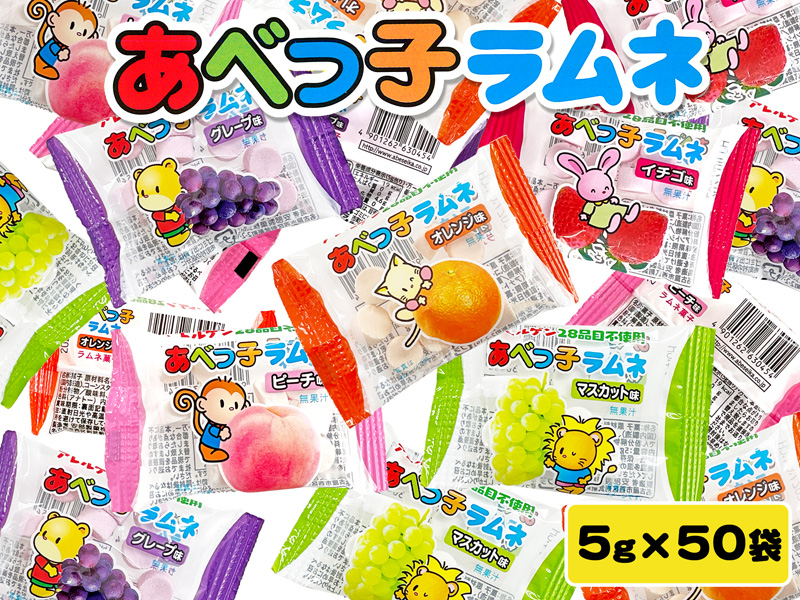 景品用お菓子 あべっ子ラムネ(くだものらむね)50入【軽減税率対象商品】