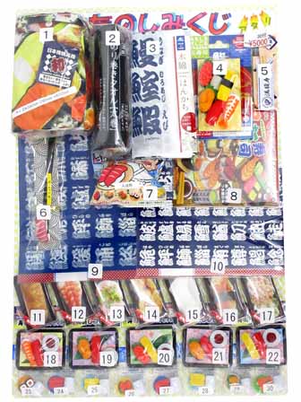 へいお待ち!日本と言えば「SUSHI-スシ」といことで粋なお寿司グッズをあつめたオリジナルくじが新登場!既製品の当てものくじに比べ、内容はバツグンに良いです!外国の方へのお土産品やお寿司屋さんの景品くじ、または時期的に父の日のプレゼントなどなど…幅広い用途と年代にご利用ができますよ。