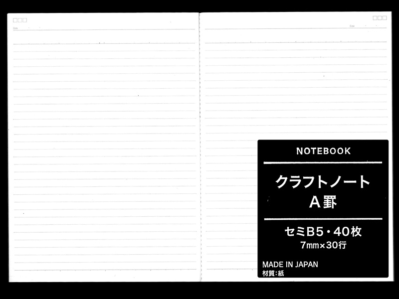 - ノートの仕様:A罫(7mm)/30行/40枚