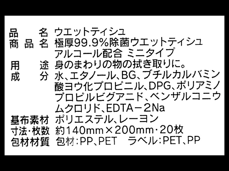 衛生用品 除菌アルコールウェットティッシュ 極厚ミニ(20枚×2個セット)