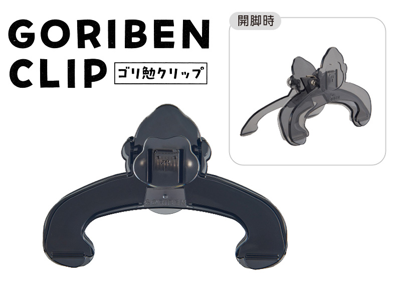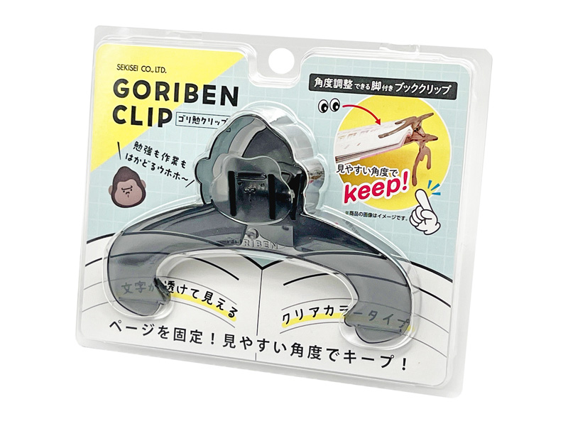勉強の作業もはかどるウホウホ~♪かわいいゴリラのブッククリップが登場~!・角度調整できる脚付きなので、本を見やすい角度でキープ!脚をたためば普通のクリップとしても使えます。・ページをしっかり固定するので本を開いたまま作業ができます。 ・軽い力で開閉でき、お子さまやご高齢の方など、手の力が弱い方にも使いやすい設計です。 ・文字が透けて見えるクリアカラータイプ。クリップでとじた部分も文字が隠れません。