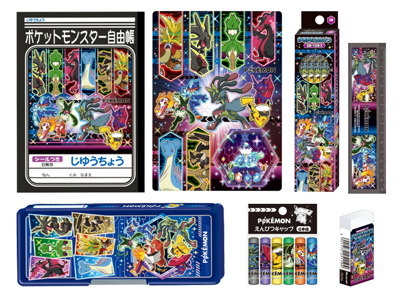 【ポケットモンスター】の「文具ギフト」が新登場♪カッコイイデザインの自由帳・下敷・15cm定規・鉛筆キャップ・2Bかきかた鉛筆・消しゴム・筆箱の合計7点がセットになっています!入学準備や新学期準備、お祝いプレゼントにも喜ばれそうなキャラクターグッズです☆