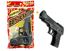 手に馴染むジャストフィットな「BBガンピストル」が登場!遊び方はまず、上部のフタをスライドさせ、付属のBB弾を充填、トリガーを引くと弾が飛び出します。男の子向けの玩具やお祭り・縁日などのイベント景品にゼヒ!