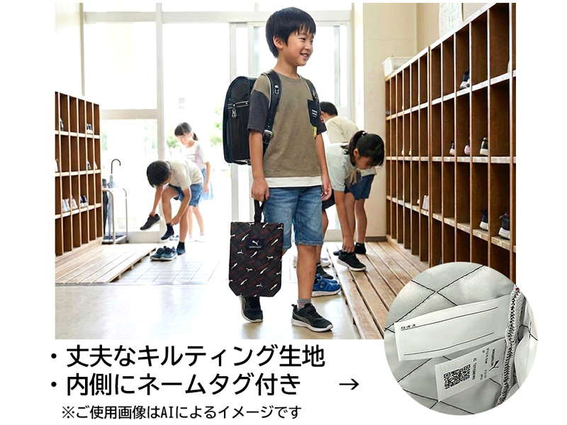 人気のスポーツブランド「PUMA」のシューズバッグが登場~!本体生地は丈夫なキルティング加工。本体内側にネームタグ付。新入園・新入学・進級準備グッズにおすすめです。