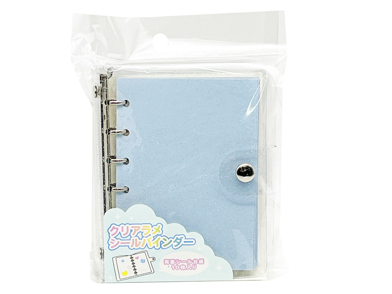 透明×ラメで今っぽかわいい~♪キラキラ輝くラメ素材が可愛いシールバインダーが登場~♪♪シールバインダーには両面シール台紙×10枚入り。お気に入りのシールやステッカーをかわいく収納できるアイテムです。
